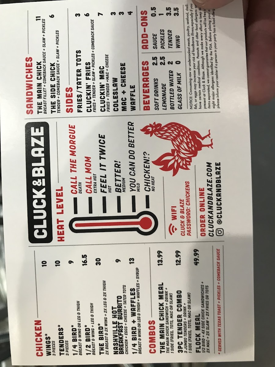 Cluck & Blaze Menu